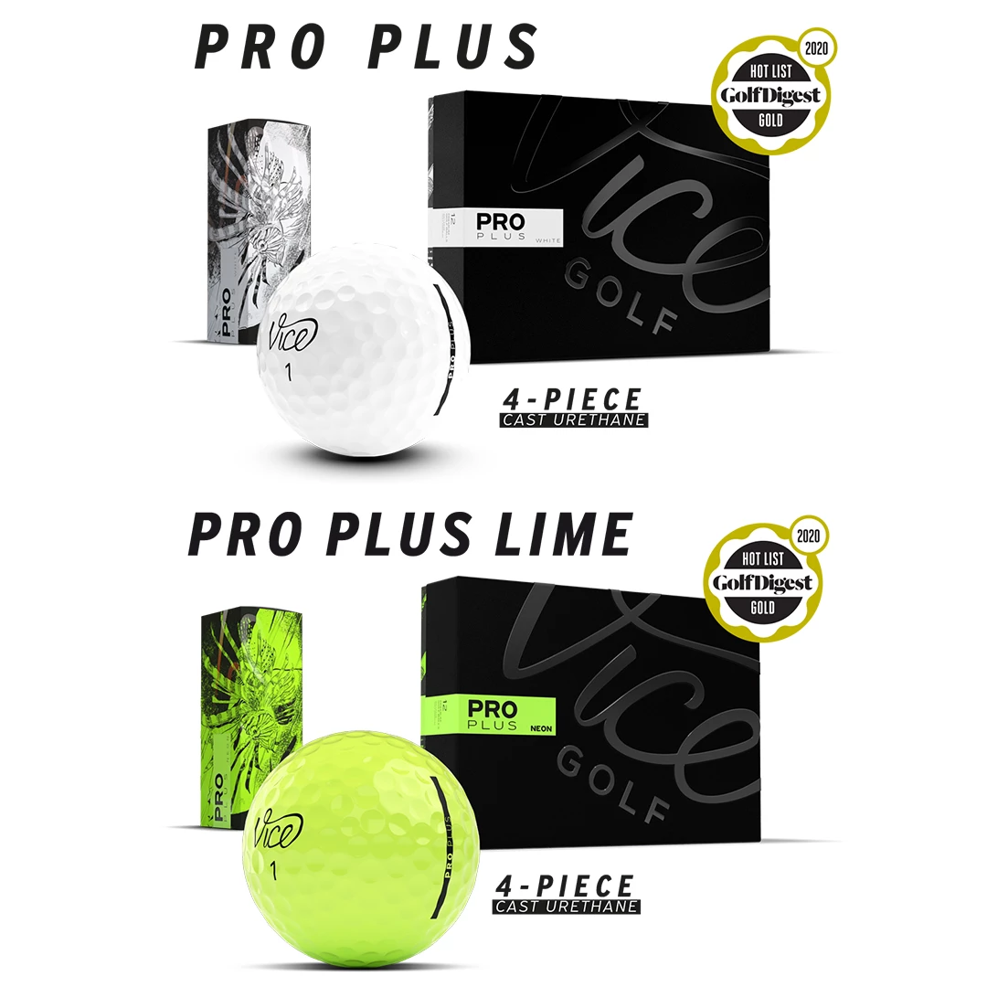 The new 4-Piece cast urethane Vice PRO PLUS is designed for advanced players with higher swing speeds. The top of the line golf ball played by many top amateurs and professionals around the world. Vice PRO PLUS players emphasize on the combination of soft feel, excellent distance and maximum spin around the green.